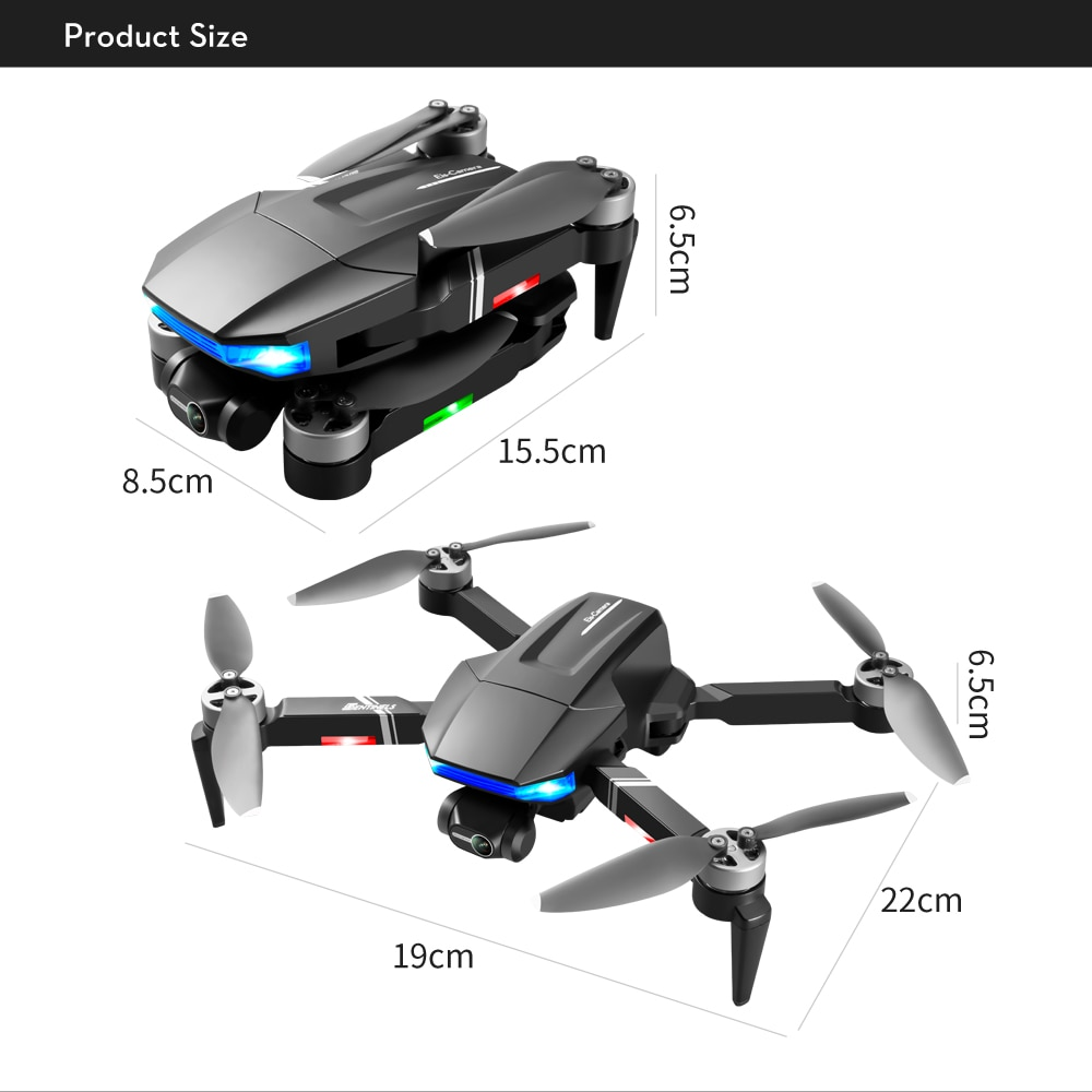 1. A lente frontal é equipada com grande angular 4K HD WiFi, a parte inferior Hd 1080p é equipada com fluxo ótico e o ângulo da câmera pode ser alterado. O design de estabilização de orientação e panorâmica mecânica de três eixos adiciona antivibração eletrônica EIS para tornar as fotos mais claras